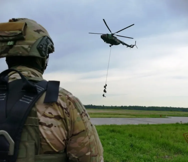 Cотрудники ОМОН «Ратник» Управления Росгвардии по Томской области совместно с летчиками авиационной эскадрильи Сибирского округа Росгвардии успешно провели тренировку по беспарашютному десантированию с борта вертолета Ми-8. Занятие прошло в рамках традиционного полевого выхода для бойцов спецназа.